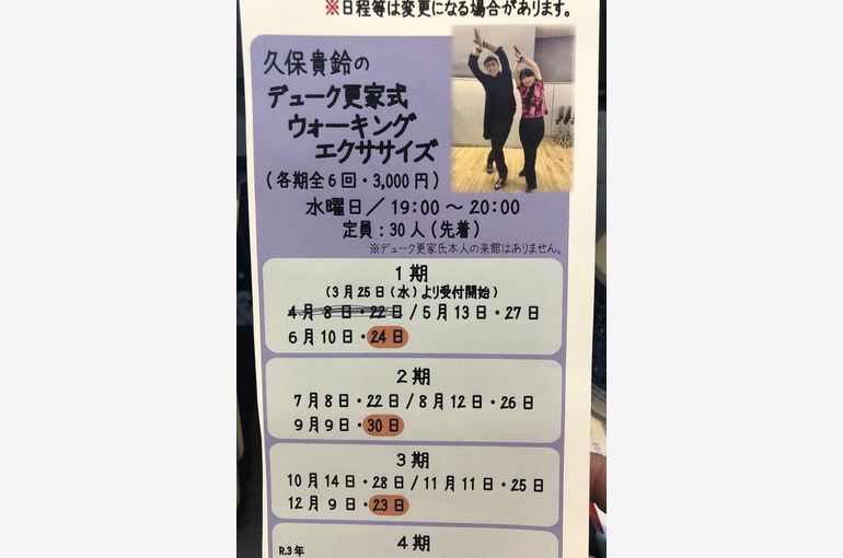 ウォーキング教室 変更のお知らせ